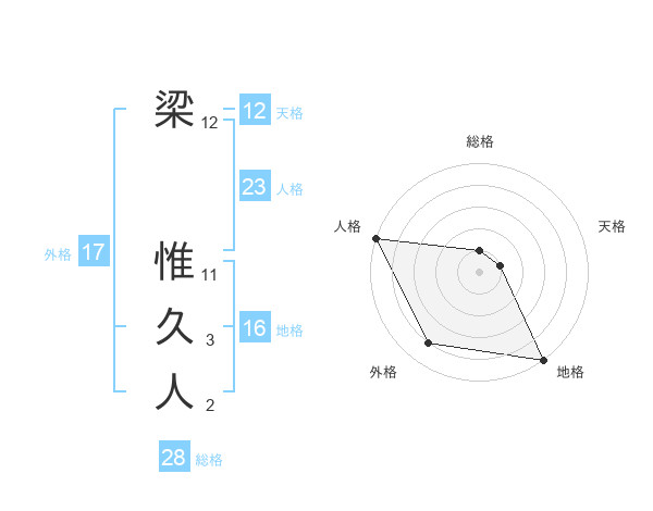 梁 惟久人さんの人格は23画の5点!