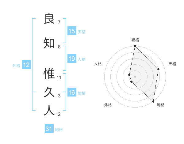 良知 惟久人さんを姓名の画数から五運を鑑定
