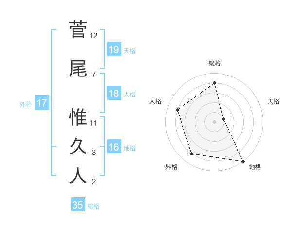 菅尾 惟久人さんを姓名の画数から五運を鑑定