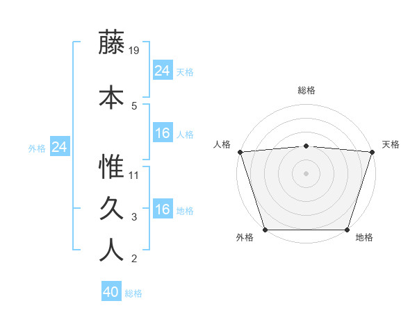 藤本 惟久人さんを姓名の画数から五運を鑑定