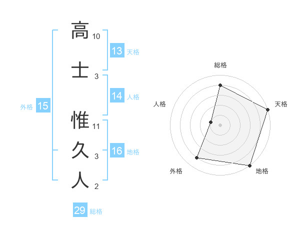 高士 惟久人さんの総格は29画の4点!