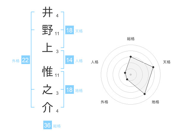 井野上 惟之介さんを姓名の画数から五運を鑑定