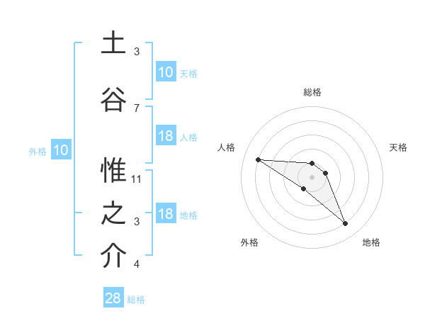 土谷 惟之介さんを姓名の画数から五運を鑑定