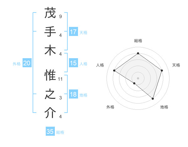 茂手木 惟之介さんを姓名の画数から五運を鑑定
