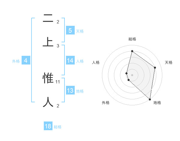 二上 惟人さんの地格は13画の5点!