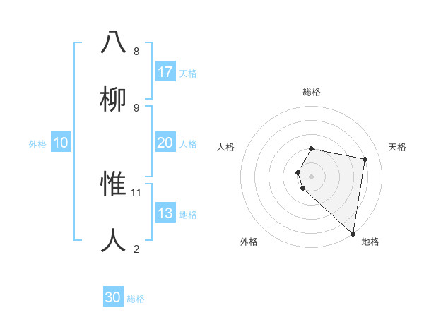 八柳 惟人さんを姓名の画数から五運を鑑定