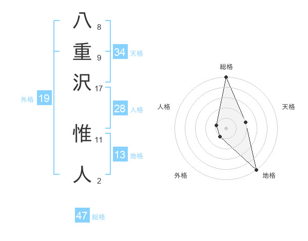 八重沢 惟人さんを姓名の画数から五運を鑑定