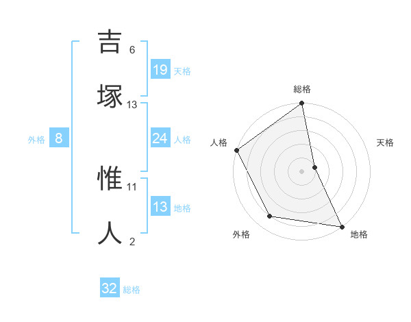 吉塚 惟人さんの総格は32画の5点!