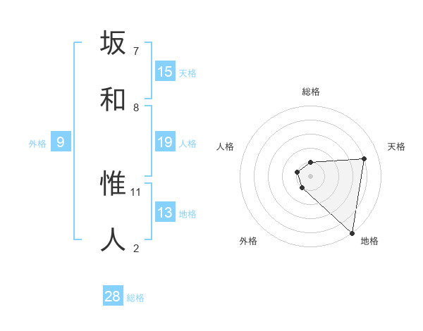 坂和 惟人さんの総格は28画の1点!