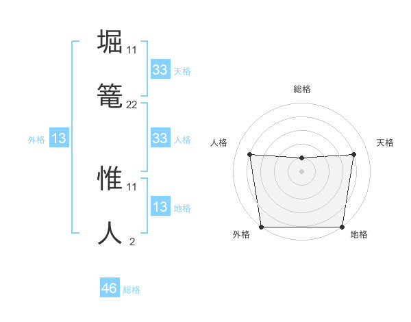 堀篭 惟人さんを姓名の画数から五運を鑑定