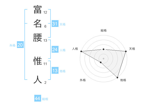 富名腰 惟人さんの地格は13画の5点!