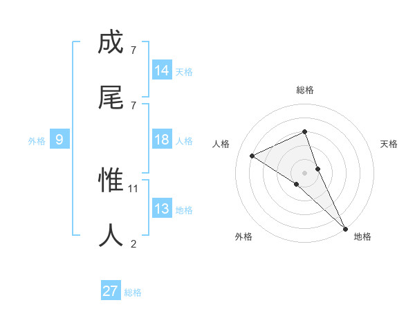 成尾 惟人さんの総格は27画の3点!
