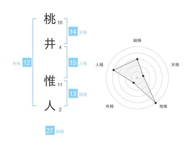 桃井 惟人さんの総格は27画の3点!