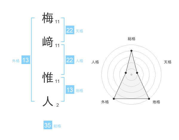 梅﨑 惟人さんを姓名の画数から五運を鑑定