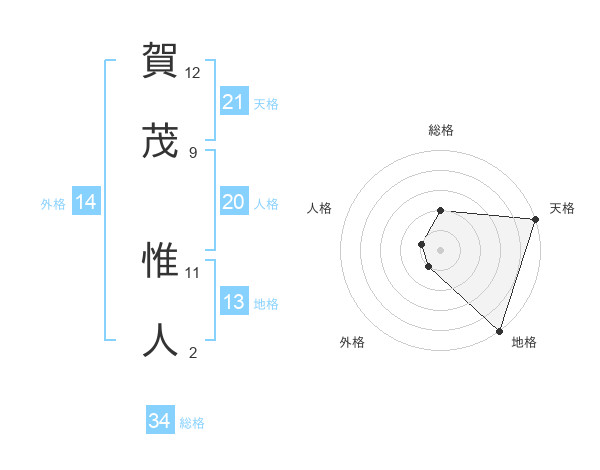 賀茂 惟人さんを姓名の画数から五運を鑑定