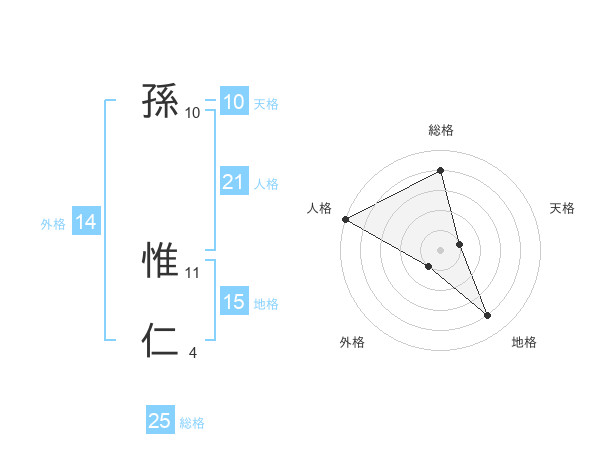 孫 惟仁さんの総格は25画の4点!