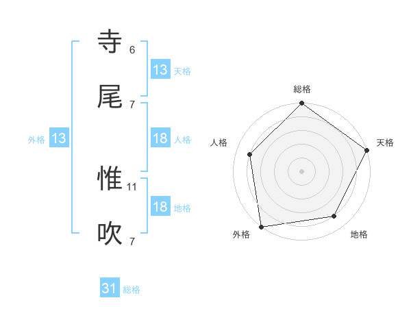 寺尾 惟吹さんを姓名の画数から五運を鑑定