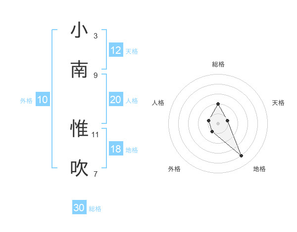 小南 惟吹さんの総格は30画の2点!