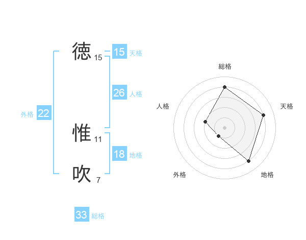 徳 惟吹さんを姓名の画数から五運を鑑定