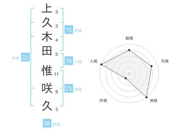上久木田 惟咲久さんを姓名の画数から五運を鑑定