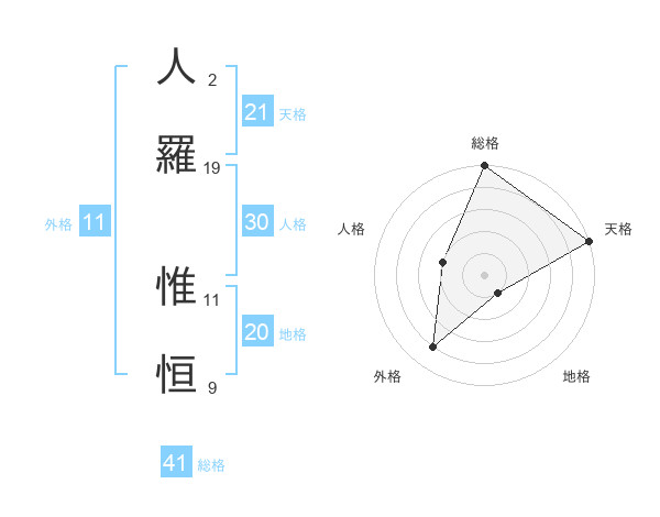 人羅 惟恒さんの外格は11画の4点!