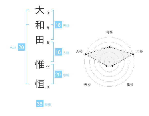 大和田 惟恒さんを姓名の画数から五運を鑑定