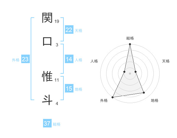 関口 惟斗さんの外格は23画の5点!