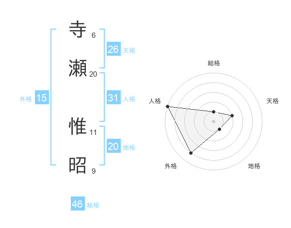 寺瀬 惟昭さんの天格は26画の2点!