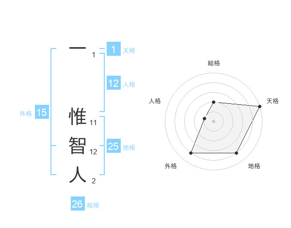 一 惟智人さんの外格は15画の4点!