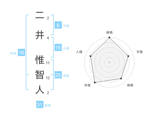 二井 惟智人さんの総格は31画の5点!