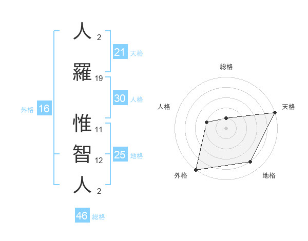 人羅 惟智人さんの天格は21画の5点!