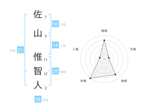 佐山 惟智人さんを姓名の画数から五運を鑑定