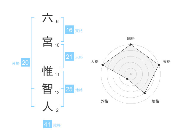 六宮 惟智人さんを姓名の画数から五運を鑑定