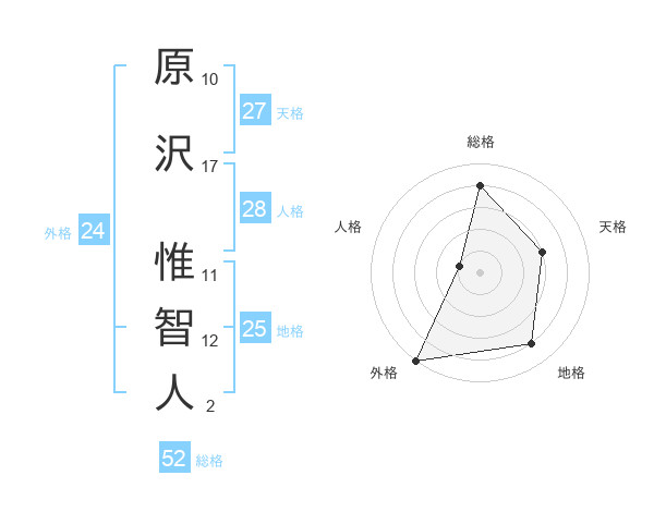原沢 惟智人さんの総格は52画の4点!