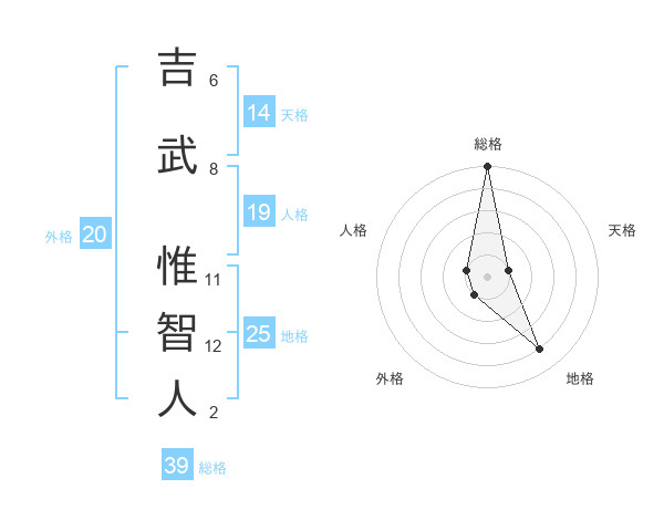 吉武 惟智人さんを姓名の画数から五運を鑑定