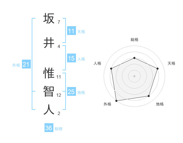 坂井 惟智人さんを姓名の画数から五運を鑑定