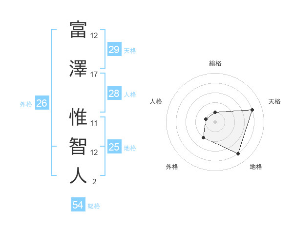 富澤 惟智人さんの地格は25画の4点!