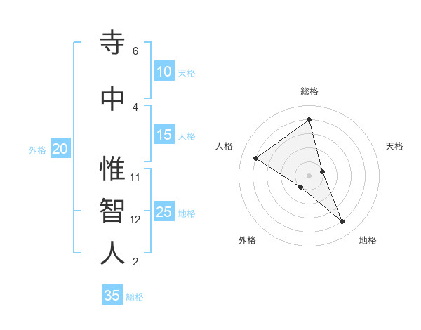 寺中 惟智人さんの総格は35画の4点!