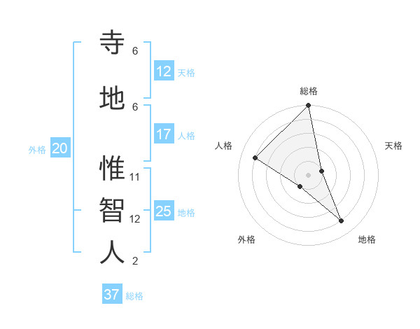 寺地 惟智人さんの天格は12画の1点!