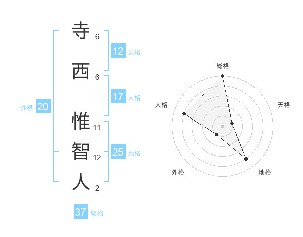 寺西 惟智人さんの地格は25画の4点!