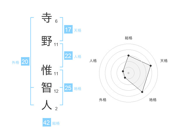 寺野 惟智人さんの天格は17画の4点!