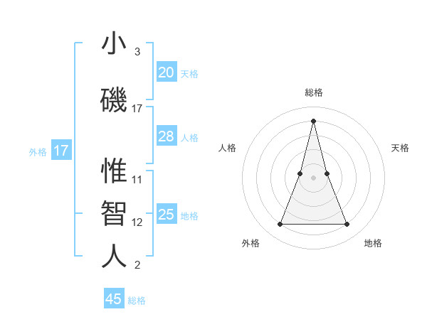 小磯 惟智人さんの外格は17画の4点!