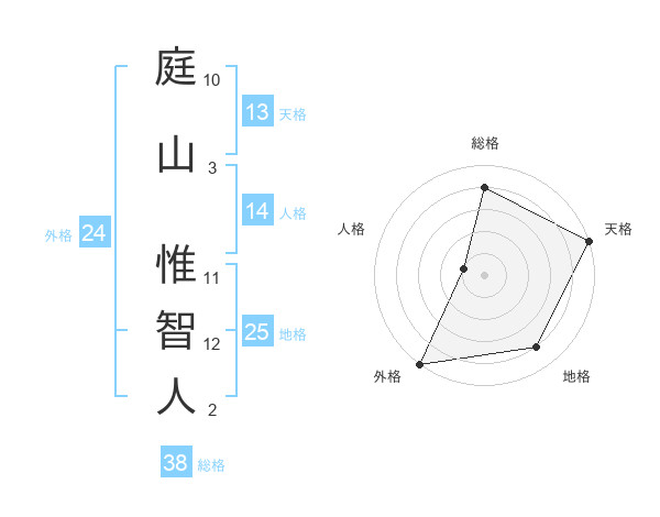 庭山 惟智人さんを姓名の画数から五運を鑑定