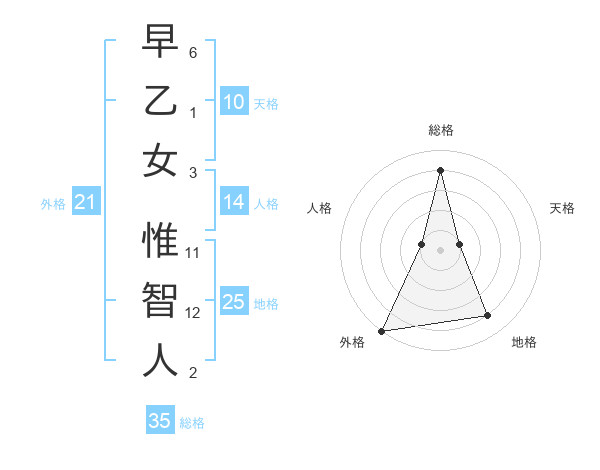 早乙女 惟智人さんの総格は35画の4点!