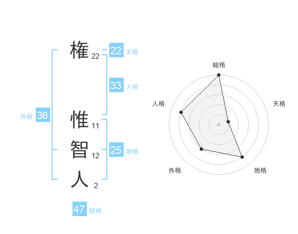 権 惟智人さんの総格は47画の5点!