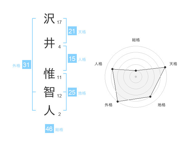 沢井 惟智人さんを姓名の画数から五運を鑑定