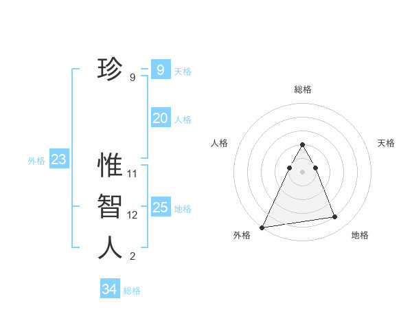 珍 惟智人さんを姓名の画数から五運を鑑定