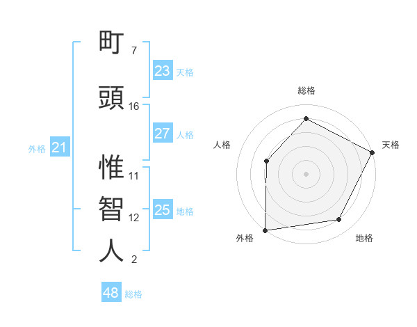 町頭 惟智人さんの総格は48画の4点!