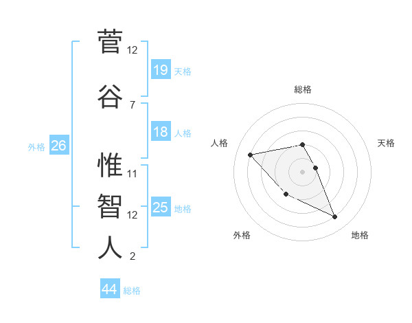 菅谷 惟智人さんの地格は25画の4点!