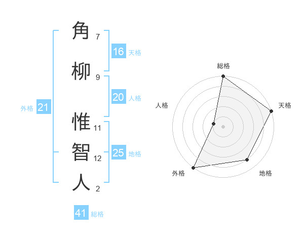 角柳 惟智人さんを姓名の画数から五運を鑑定